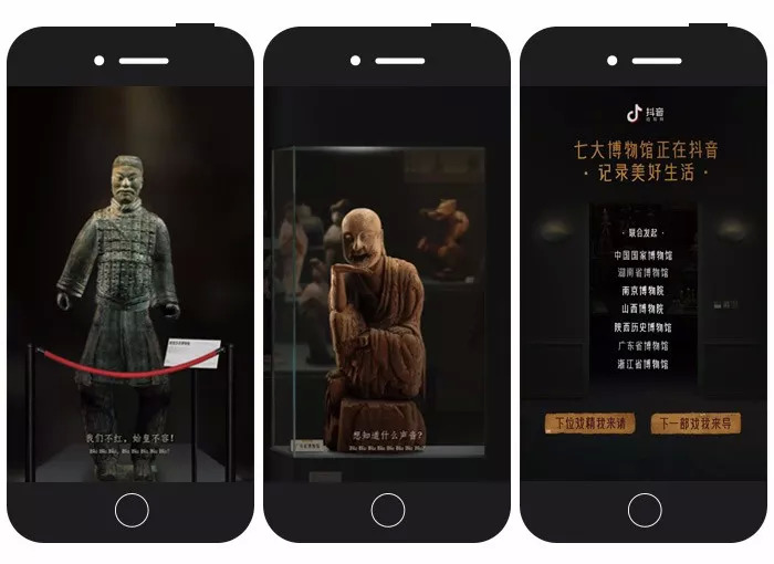 一支名为《第一届文物戏精大会》的H5 在朋友圈刷屏式传播,打破了睡前的宁静....尘封多年的文物好不容易出土,却又被禁锢在博物馆里,每天接客无数,永无下班之日,而它们想红的心,也早已压抑了千年,终于,这帮文物戏精在抖音神曲的洗脑下,完全放飞自我了!当博物馆遇上抖音,历史与现实交融,产生了一种奇妙的化学反应。博物馆不再高高在上,变得平易近人,走进了大众的日常生活。