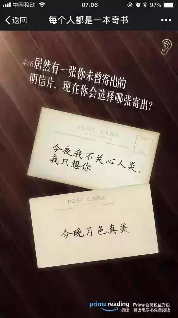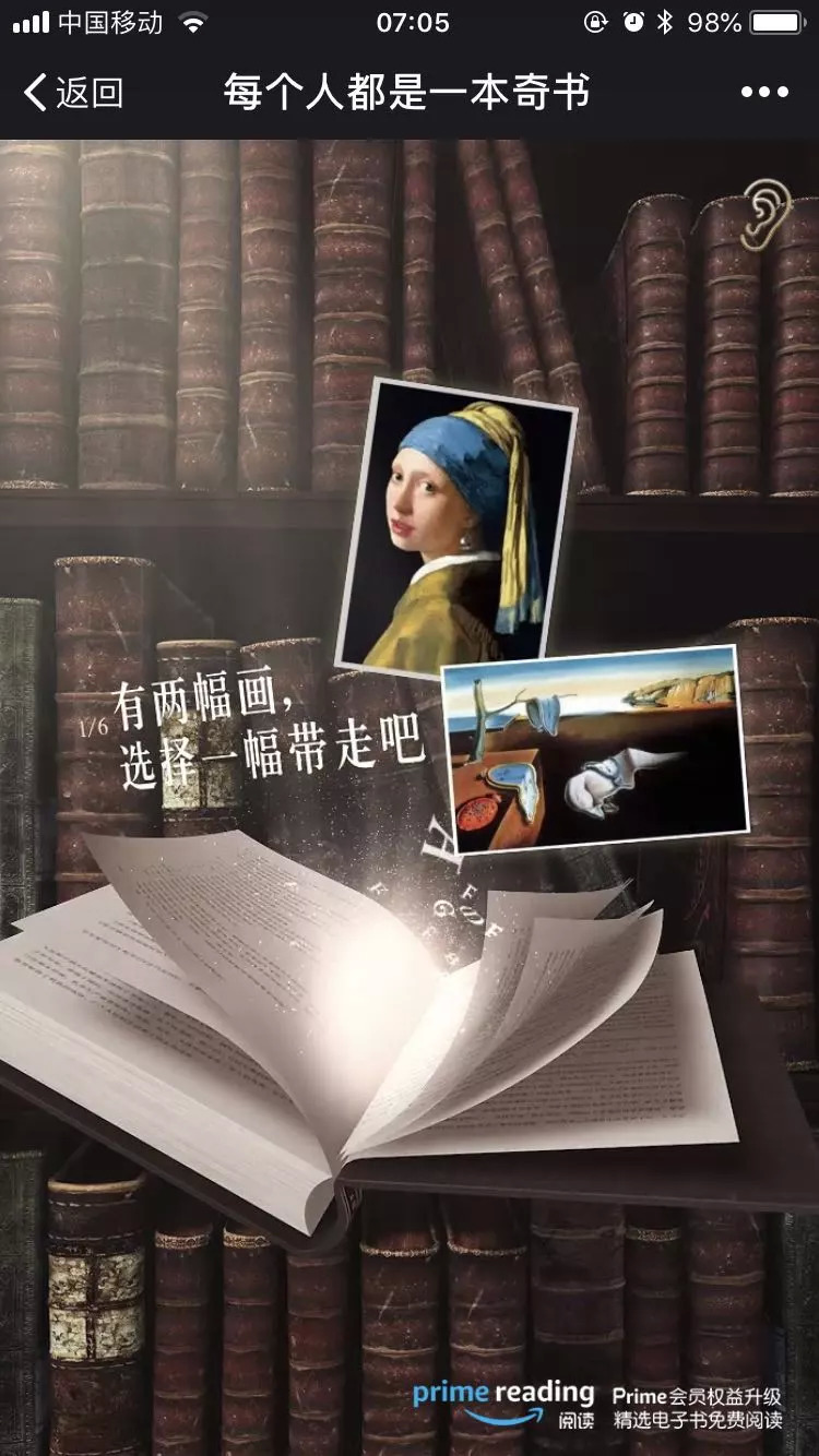 其次,亚马逊这次没有采用类似的APP收集数据,而是给我们出了6道类似性格测试的选择题。每一道题内容互不雷同,却都会默默地影响到最终结果。通过测试结果可以看出!其中既有经典文学、哲学思辨,也有商业洞察与个人管理。