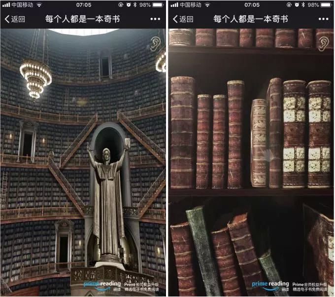 这支H5运用了VR和3D效果的结合,跟用户一起进入一个神奇的图书馆进行“冒险”,在视觉呈现上可以说做的很棒,它的壳是一个制作精良的壳。这也是愿意分享的最基础条件。