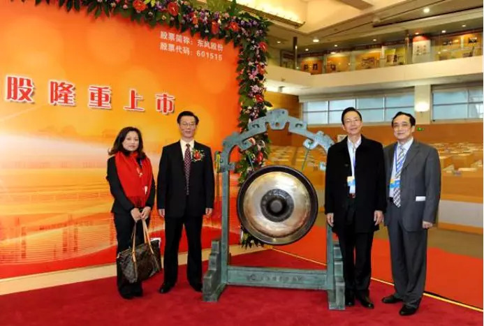 黄炳文、曾喜珠(左2、1)出席东风股份上市仪式