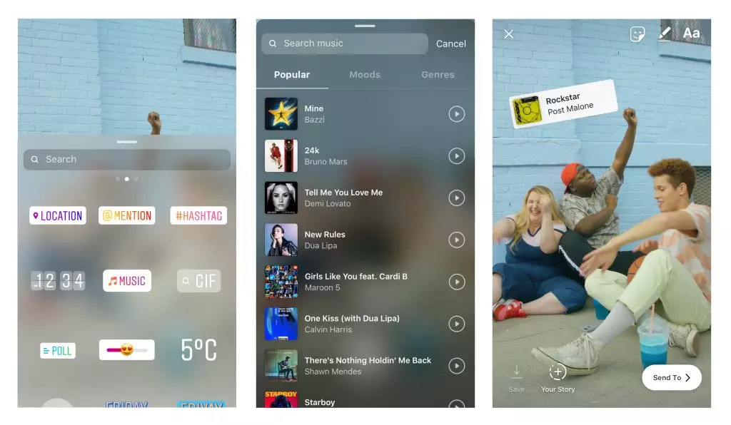 现在的Story似乎不再满足于“阅后即焚”,它开始提供越来多的的滤镜、音乐,来增强它的娱乐功能。按照Instagram官方的说法,为Story增添音乐,目的是给用户更好的体验,和朋友和粉丝进行互动。