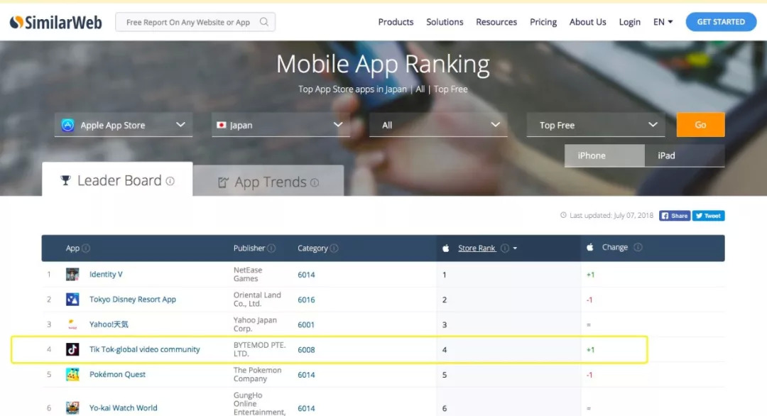 在这样的基础之下,抖音还是实现了强势入侵。刺猬君查询最新的数据发现,Tik Tok在APP Store日本市场的排名远高于Instagram。