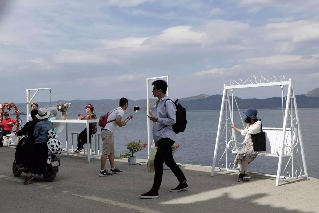 在洱海边突然看到前面挤了一大群人,不知道在干什么。