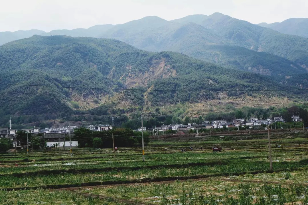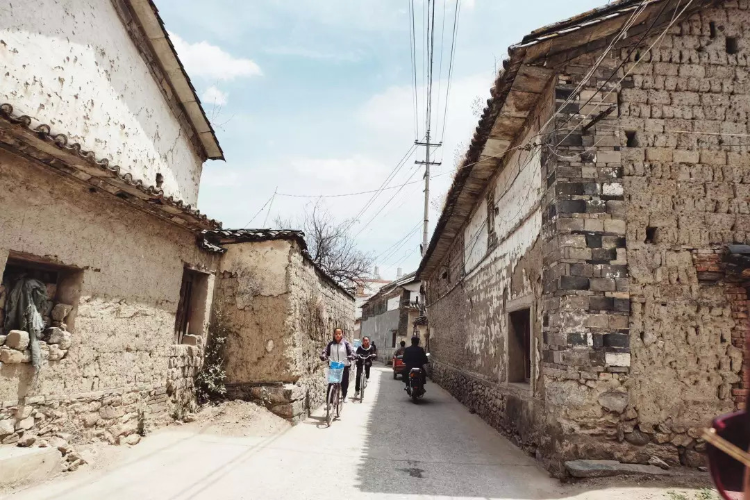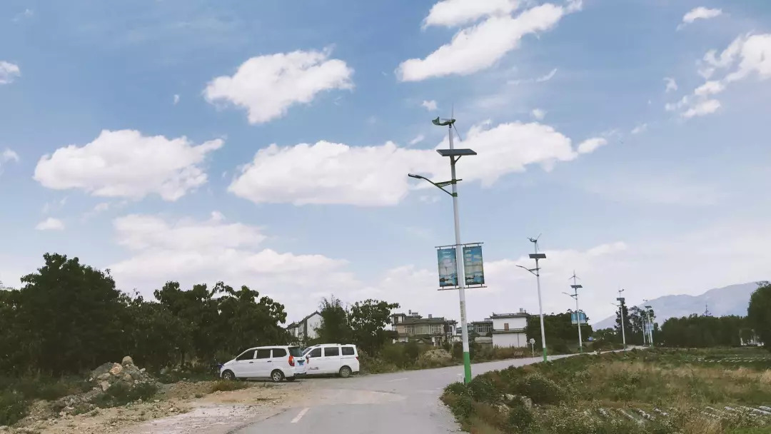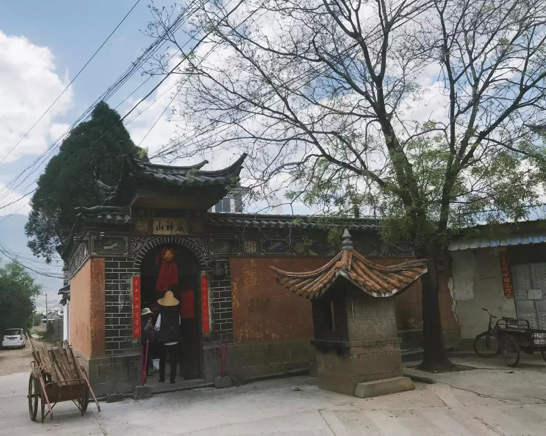 没想到我们进入了一个有趣的小村。马车在前面叮叮当当地跑着。身着白族传统服饰的老年人正在路边卖菜。山神庙里冒着香烟。漂亮的白族楼房扑面而来。
