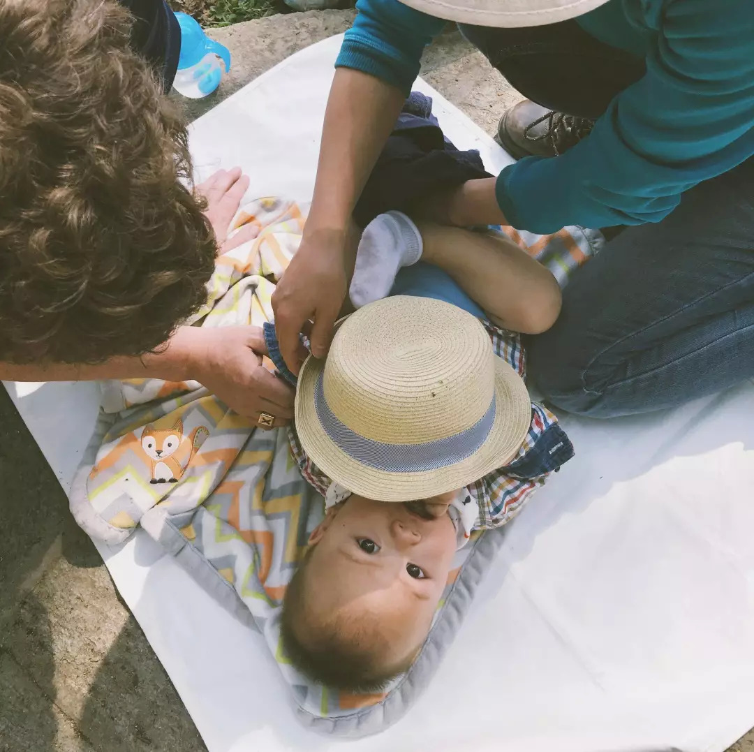 刚满一岁的幼安就开始跟着父母四处旅行,早就习惯了露天换尿布了
