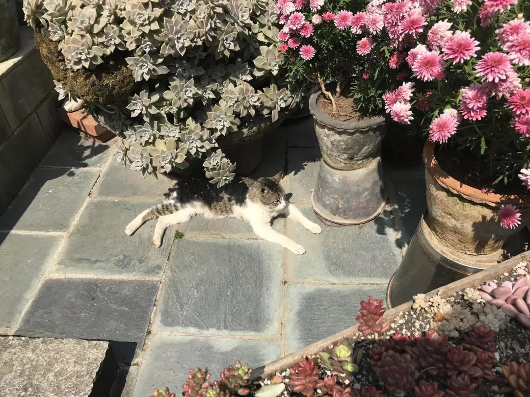 院子里晒太阳的猫