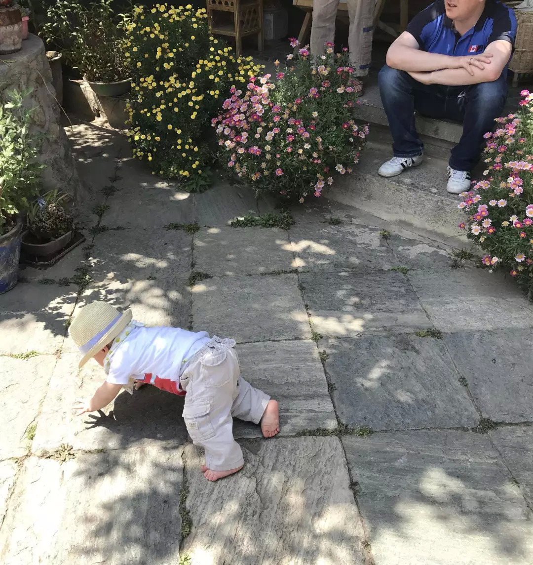 幼安可以随意在室外的地上爬来爬去,甚至把大石头往嘴里塞。李老师说,没关系,可以增强他的抵抗力。