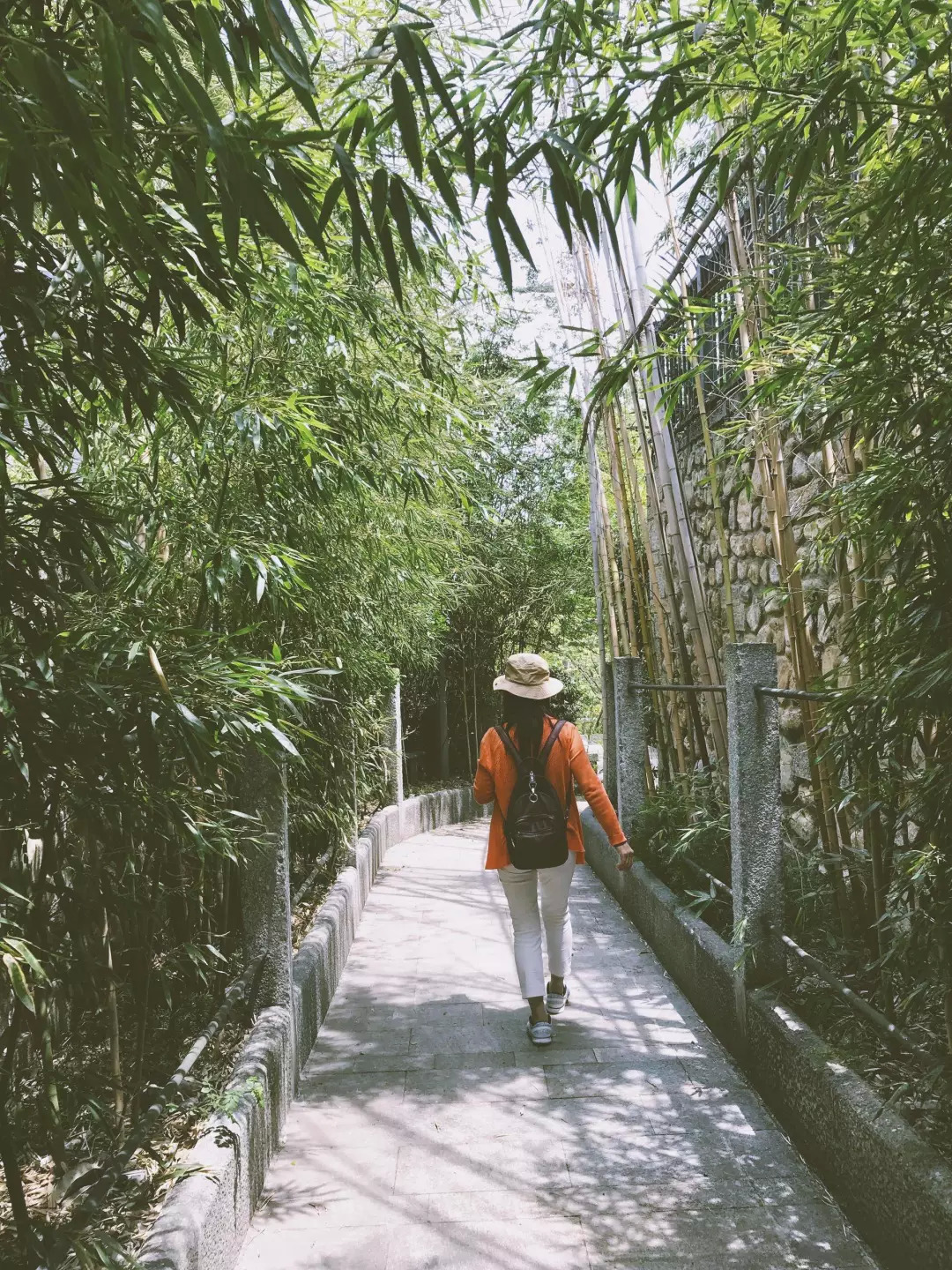 有本地人陪伴的好处便是,你总能跟游客走上不一样的道路。由婷婷做向导,我们避开了无聊的索道,选择走路上山。大家在门口意气风发地合影一张,准备出发。