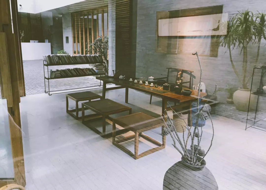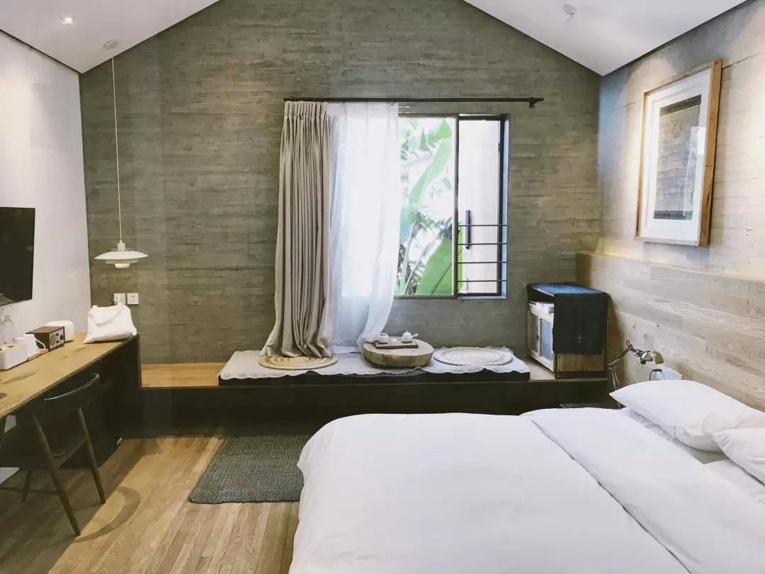 酒店闹中取静,最外面是咖啡区,客人可以在这里吃早餐、喝下午茶,再往里走是幽静的庭院和茶室,几只锦鲤在水池里游来游去。出门左转进入人民路,便是热气腾腾的餐馆与五花八门的商店。