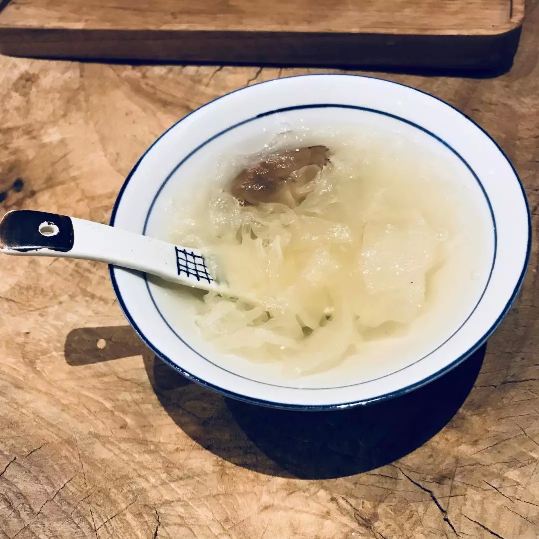 吃过晚饭回酒店休息时,前台告诉我,今晚的甜品已经准备好了。没过几分钟,一碗美容的银耳汤就送到了房间。