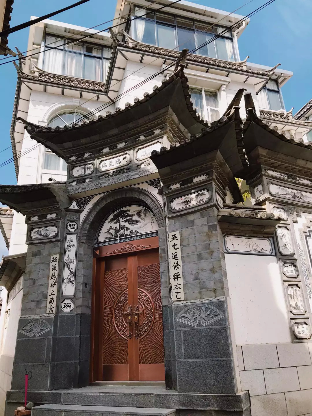 路上婷婷为我们科普了不少有意思的白族文化。比如,经过这家人门口时,我们看到了黄色的对联。根据文字,猜测是家里有人去世了。
