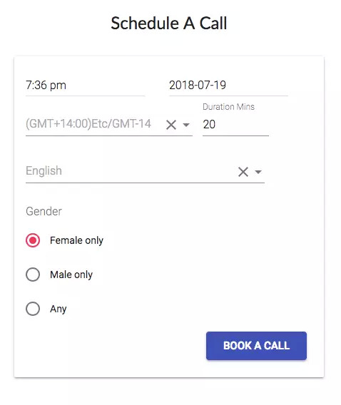 选好语言后,你还可以选择手语翻译的性别。之后用户便可以开始按下搜索键,寻求手语翻译者里。而此时你可以选择立即拨通电话,或者预约一个时间段。