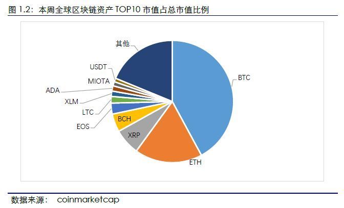 TOP10项目市值占比较稳定,10个项目中有9个项目市值有不同程度上涨。7月9日,TOP10资产项目市值为2257.08亿美元,较上周上涨11.55%,占区块链资产总市值比例为81.22%,与上周持平。TOP10资产市值有9个项目上涨,其中EOS涨幅最大,为12.19%,其次是MIOTA, 涨为9.67%。BTC本周市值占比42.13%,较上周下降0.51%。