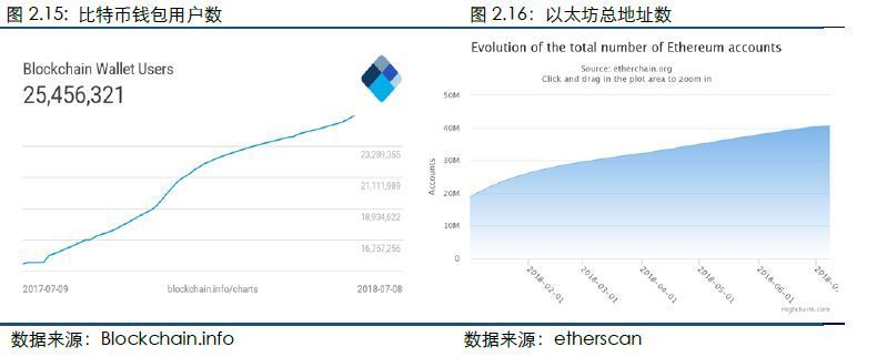本周比特币地址数量增速加快、以太坊地址数量增速减慢。根据blockchain.info数据计算,截止7月8日,blockchain钱包用户总数达25456321个,新增72307个。