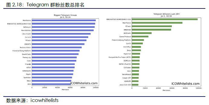 截止2018年7月7日,Facebook中Bitcoin 、Ethereum和Ripple (XRP)的公共主页关注数分列前三,分别拥有47.2万、14.8万和13.5万粉丝。Twitter中,粉丝数前三的项目为Ripple (XRP)、Bitcoin和Ethereum,粉丝数为91.2万、87.8万和43.5万。
