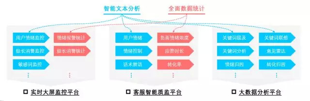 人工智能对客服领域最核心的技术支持就是利用自然语言处理技术,全量并深度分析客服及用户之间的对话内容,将原本包含在语言中的抽象信息,如:用户观点、用户情感、客服态度、热点问题、投诉倾向等量化成数字指标,从而我们能建立起一套套可视化可操作应用,如:智能客服应答、客服销售支持、实时投诉预警、话术自动检查、深度客服质检、产品问题总结等,并以此帮助企业大幅度提高运营效率。