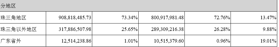 数据显示,2017年,燕塘乳业珠三角地区营收约为9.09亿元,占总营收73.34%,同比增长13.47%;珠三角以外地区营收约为3.18亿元,占总营收25.65%,同比增长9.88%;广东省外营收约为0.13亿元,同比增长19.01%。