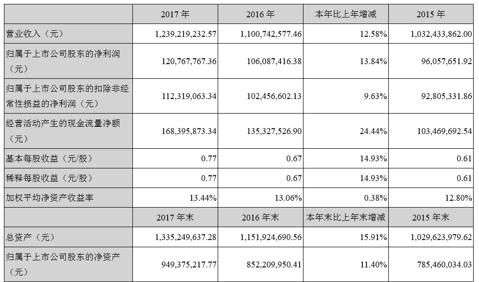 回看燕塘乳业2017年业绩,实现营业收入约为12.39亿元,同比增长12.58%;归属于上市公司股东净利润约为1.21亿元,相较于2016年的1.06亿元,增幅为13.84%,营收与净利均保持稳定增长。