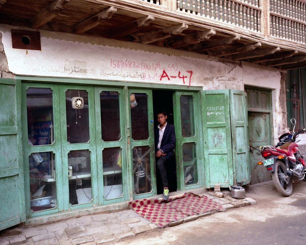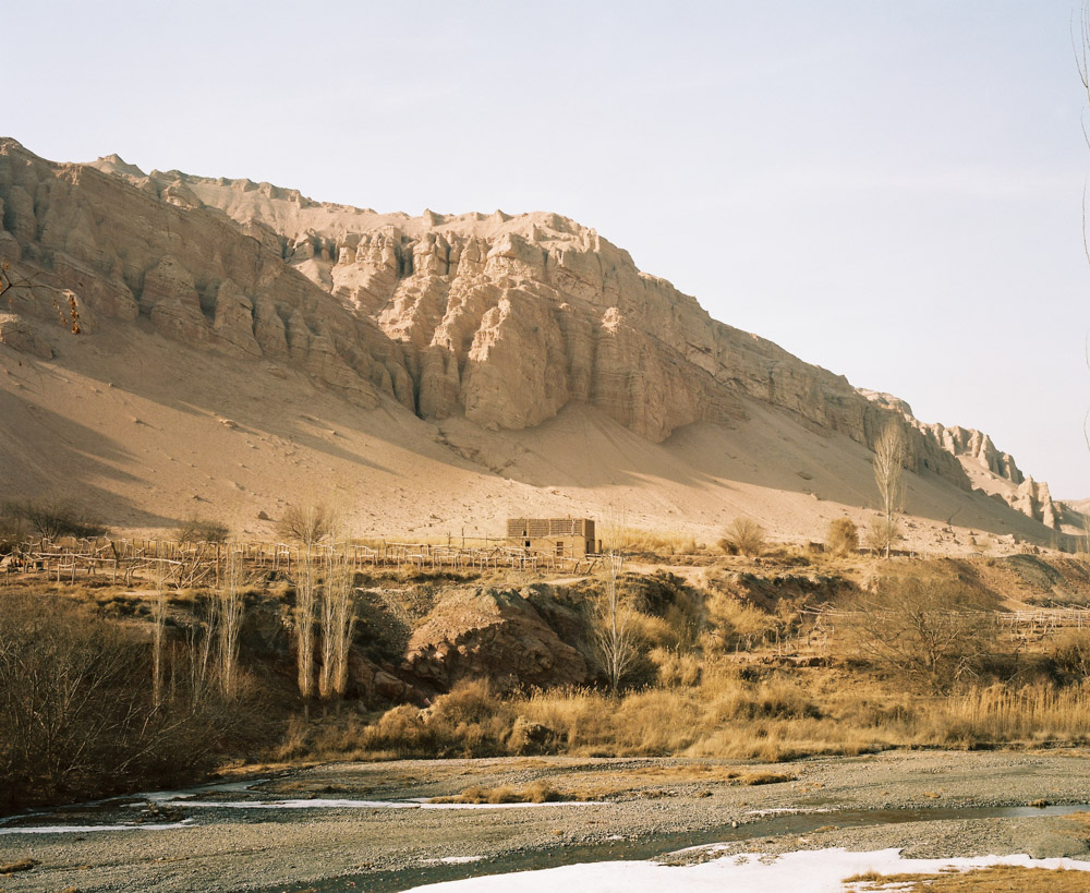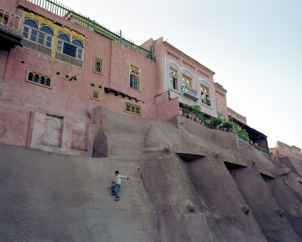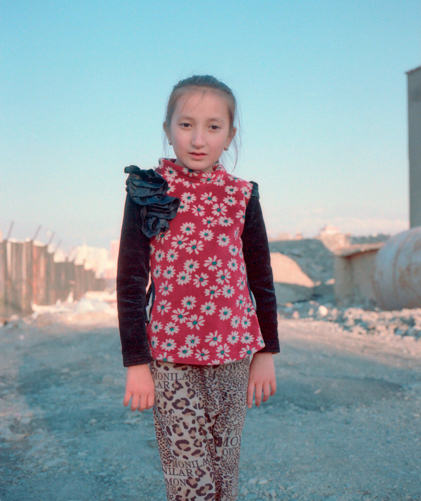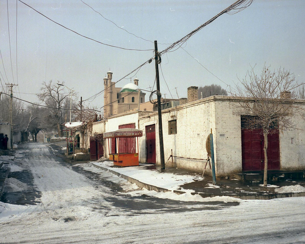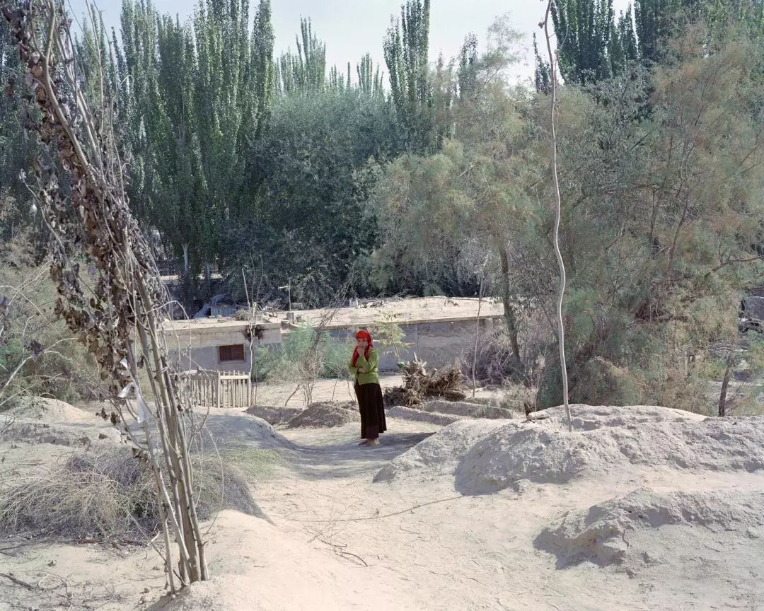 田林的摄影代表作就叫《雅玛里克》,他拍摄这片区域已经很多年。出来的时候,一个漂亮的维吾尔族女孩过来送我们,她叫虽比努尔,认识田林。站在空地上,我用玛米亚7相机给她拍了两张,这个维吾尔族女孩的美,和周边环境的破落,让我感触很深。