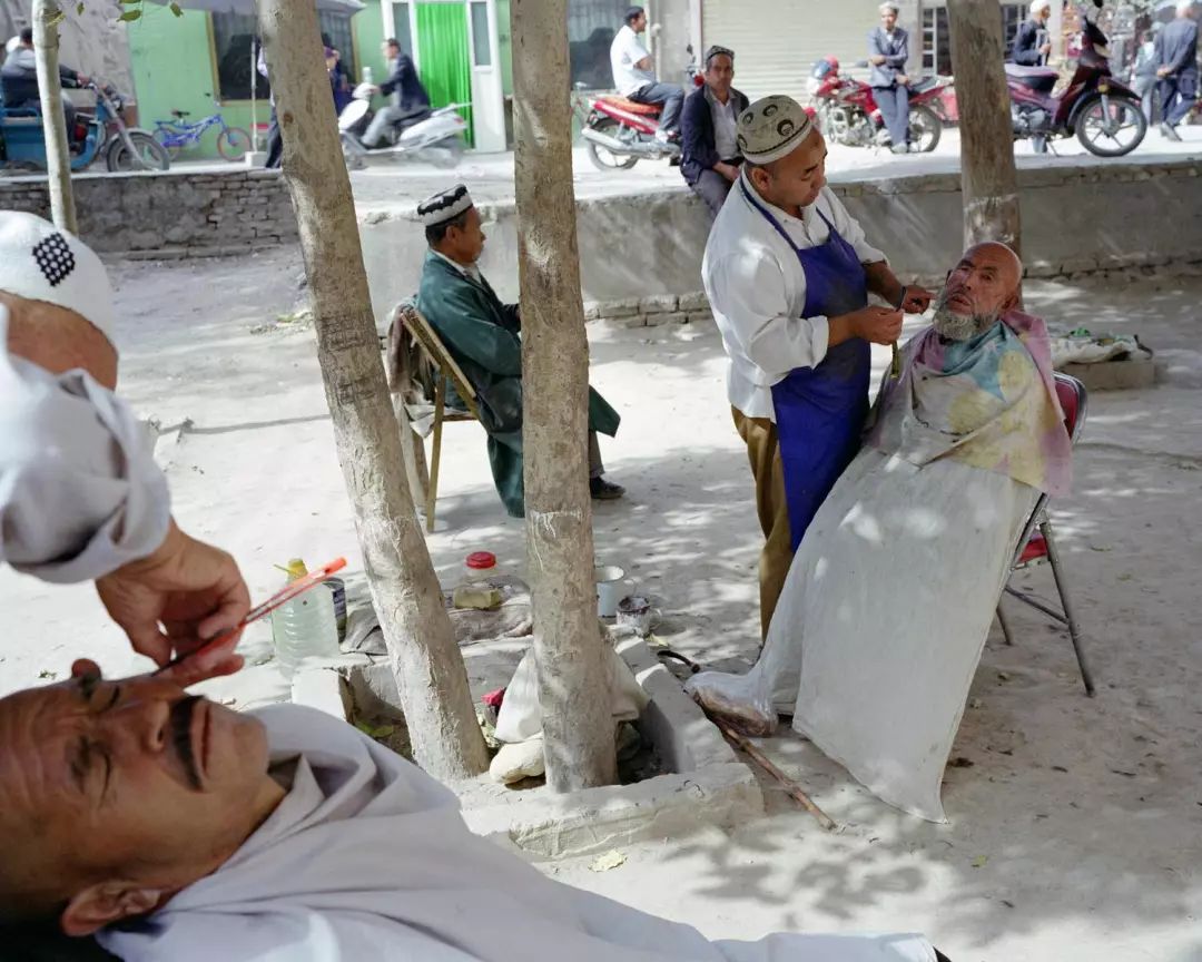 努尔今年55岁了,有三个儿子和一个女儿。小儿子巴拉提在家里,今年也26岁了,学了理发培训,每人次收5元钱。努尔原来的那台佳能相机花了1400元,是他用卖羊的钱买的。一位在于田县的老师教他摄影,还送给努尔一台三星数码相机,比那台佳能的要好一些。努尔用着特别高兴。
