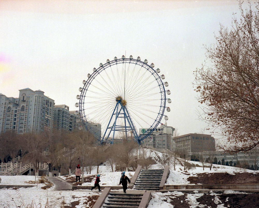 傍晚下雨了,去八卦公园逛逛,公园里有巨大的八卦摩天轮。晚上吃了马肉纳仁面,这是哈萨克族特别的食物。