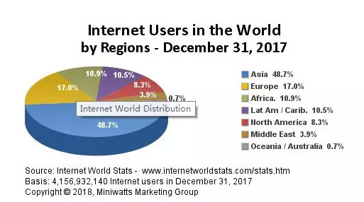 据互联网世界数据 (Internet World Status) 统计, 截至2017年12月31日,全球互联网用户为41.56亿,其中南亚、东南亚、南美等地区增速明显。从2016到2017年,中国互联网企业“出海”势头越来越猛,国内人口红利消失,全球互联网人口红利转移到南亚、东南亚、南美等地区,市场的不断成熟和发展,加之“一带一路”政策的扶持,可以说,2018年是中国内容型产品出海的新阶段。