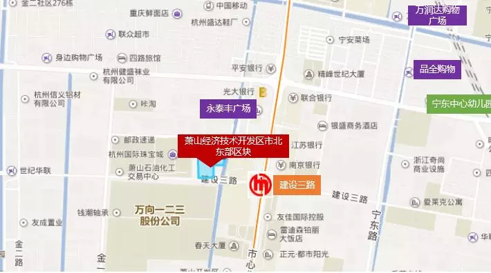 商业:地块东北侧约760米处是宁安菜场,周边1.5公里有沪宁时代购物广场、国际奥体博览中心、杭州国际珠宝城、品全购物、万润达购物广场等,商业配套较为完善。
