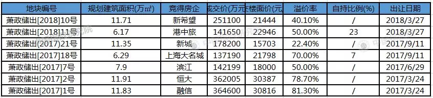 表:2017年至今(06.14)萧山区市北东单元出让地块汇总