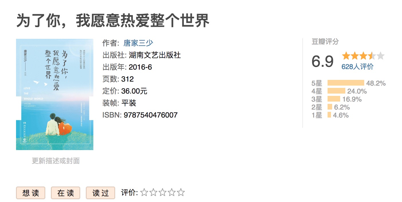唐家三少:其实我有好几本呢。为什么写这个呢?第一随着年龄增长再加上写东西多了,也想写一些现实题材的故事。像《为了你》这本书是我很久以前就想写的,我跟我老婆算是中国第一代网恋吧,就想把这个东西记录下来。(注:唐家三少的奶奶因为脑血栓、脑梗失去记忆,记录人生是他对媒体说的另一个写作原因)