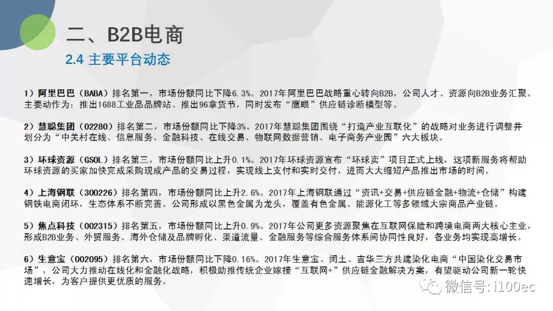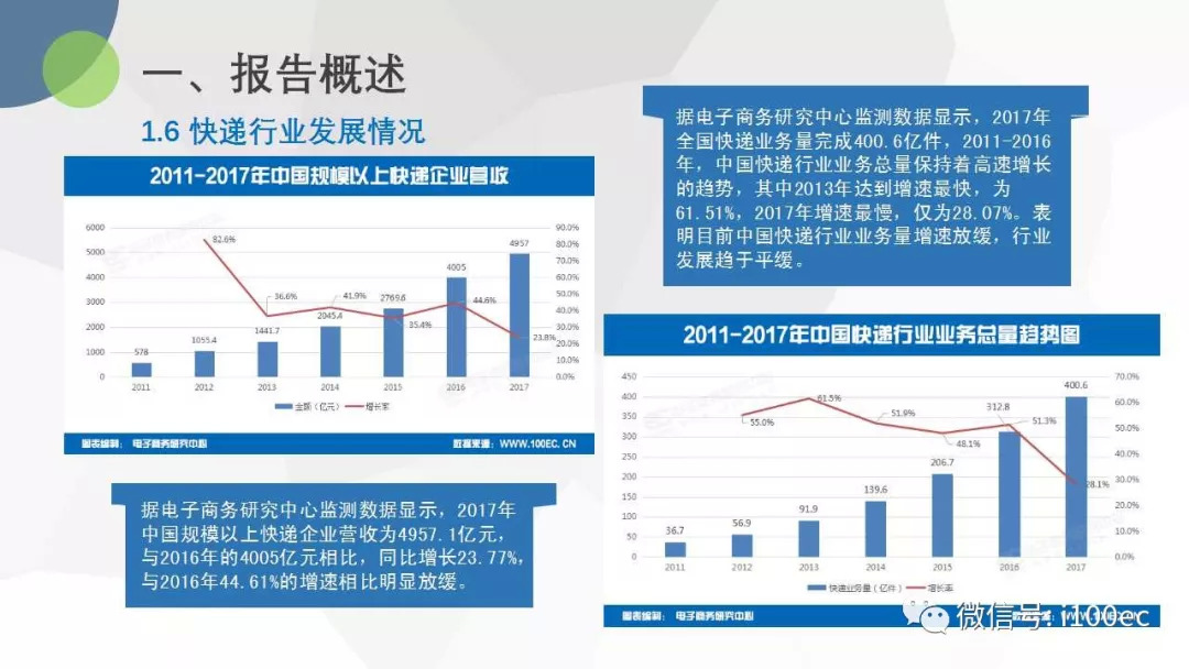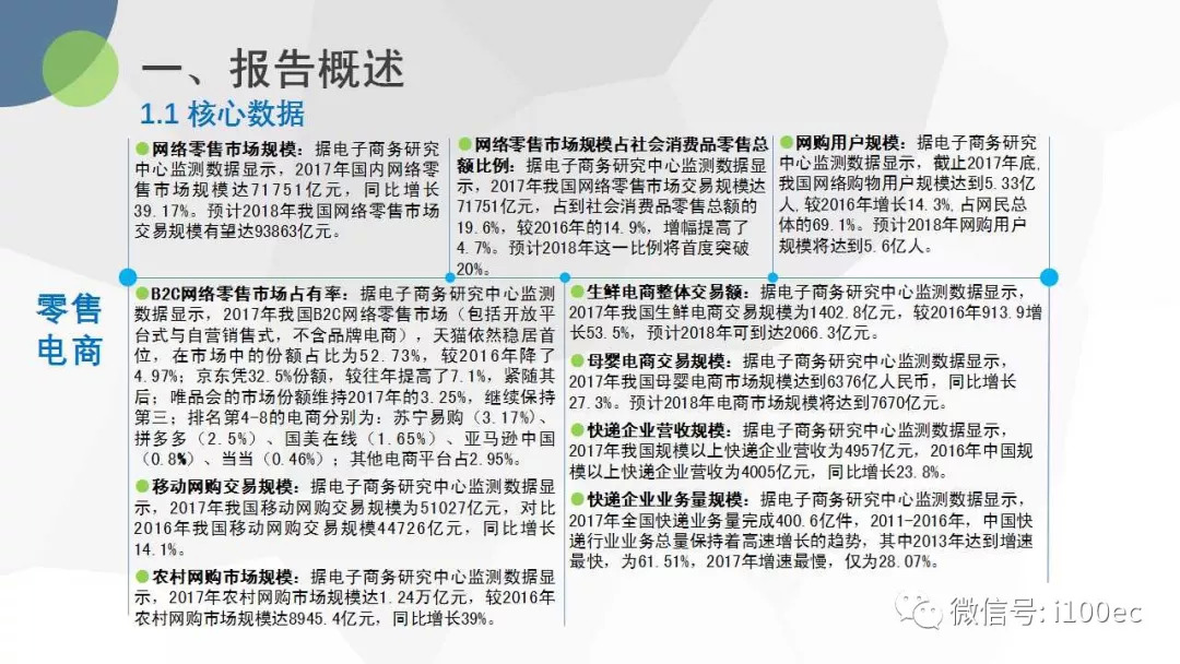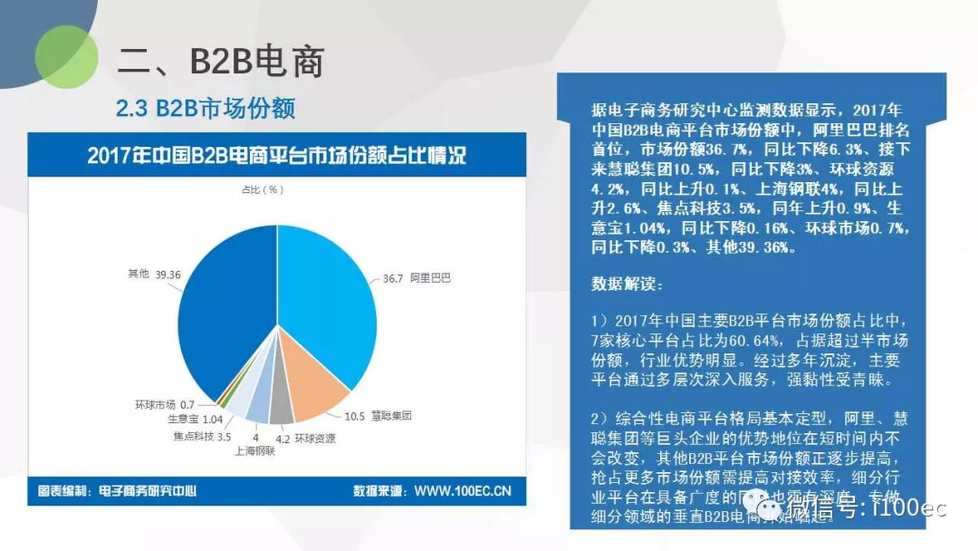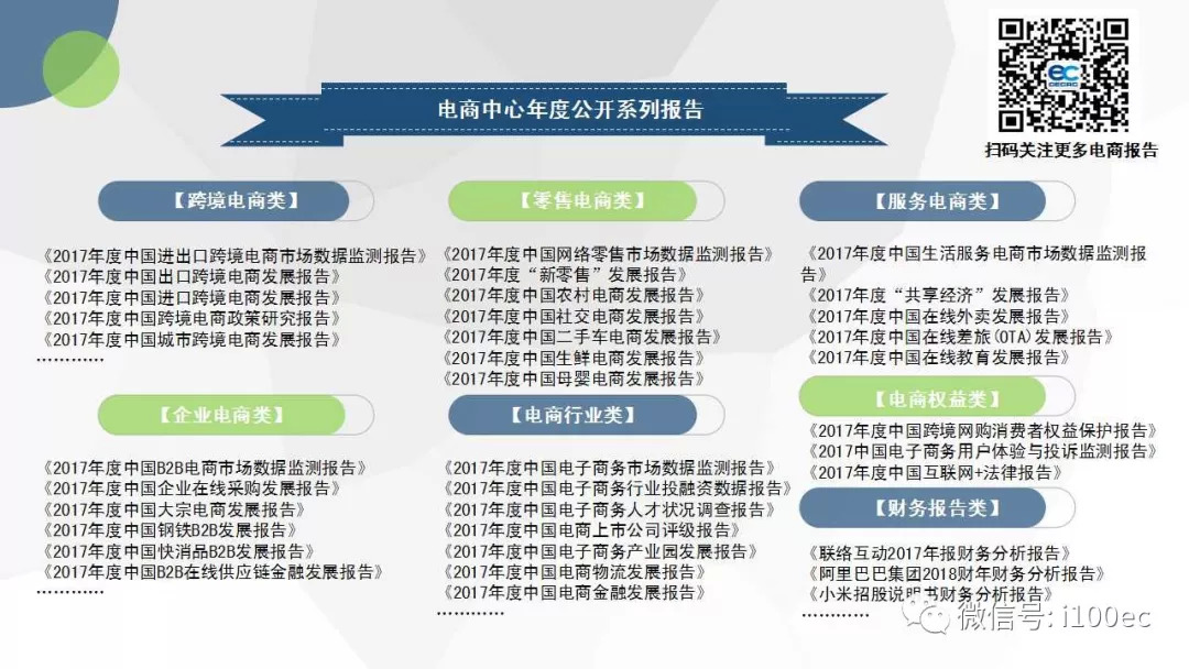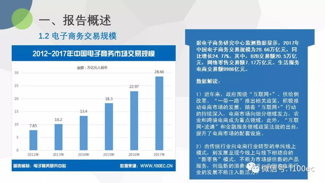 以下为电子商务研究中心自媒体(微信ID:i100EC)为您带来的《2017年度中国电子商务市场数据监测报告》简版PPT: