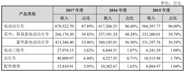 招股书显示,2015年、2016年、2017年,爱玛科技的营业收入分别为59.12亿元、64.44亿元、77.94亿元,净利润分别为3.75亿元、4.47亿元、2.63亿元。2017年,爱玛科技净利润下滑约41%。