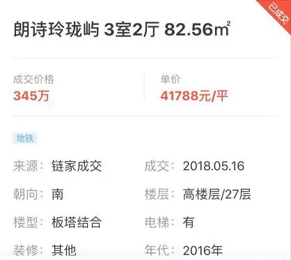另外,朗诗玲珑屿在5月也有一套二手房成交,面积82.56㎡,成交单价41788元/㎡。