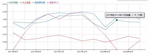 奇骏为何平稳中走向强势?我们的观点是,一方面是由于CR-V空出的市场至少有一半被同为日系的奇骏分流,另一方面则是奇骏综合的性价比和产品力优势是重要原因。