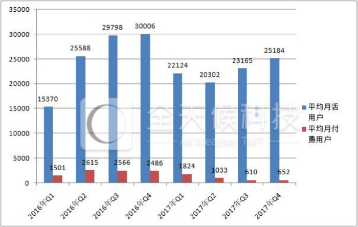 面对降温的市场环境,映客的发展也出现瓶颈。映客招股书显示,映客的用户数出现了增长乏力的情况:平均月活在2016年第四季度达到顶峰值,2017年上半年开始出现滑坡,下半年又有回升之势;而平均月付费用户则在2016年第二季度达到巅峰后,一路呈现下滑态势。