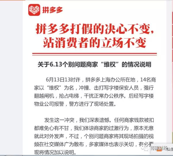 而大众更关心的,可能是6月中旬被媒体曝出的大量拼多多商家在上海总部维权要钱的新闻。