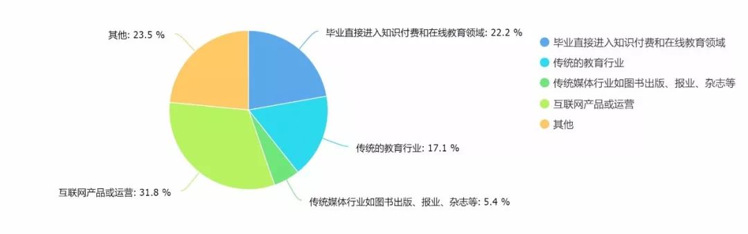 所谓“知识付费”和“在线教育”,如果对标传统的商业社会,会涉及到“出版、教育、传媒“三大行业,但是在目前的知识付费领域,从教育和传媒、出版中跳行过来的加起来才只有22.5%,而从互联网产品或运营这一个渠道转过来的就有31.8%。