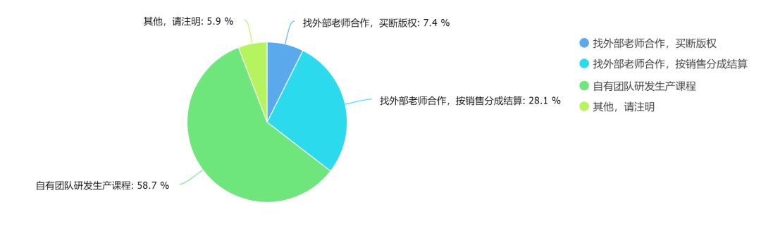 在课程生产方式上,58.7%的团队采用自有团队生产内容的方式,是占比最大的一类: