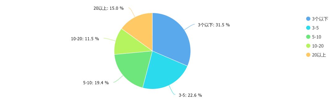 从课程生产速度来看,过去半年内生产课程在3个以下的团队占比最多,占到31.5%。如果不考虑团队规模,半年内,平均每个团队生产课程类单品大约在8-9个。