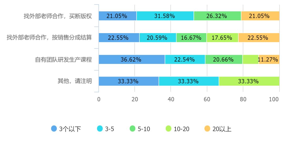 调查也显示,自有团队研发课程的课程生产速度比较显著地低于与外部老师合作研发课程的速度。