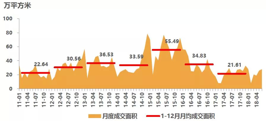 图:2011-2018年06月深圳市商品住宅成交面积统计