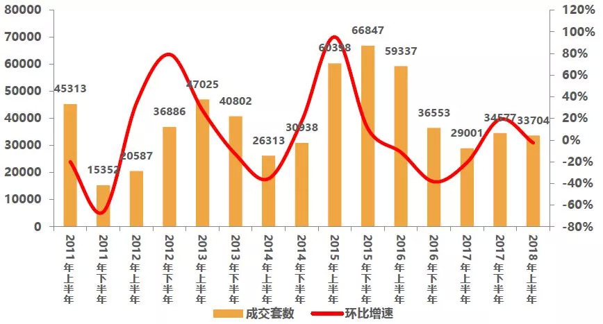 2018年上半年,深圳二手住宅成交33704套,同比增加16.22%;成交面积为276.86万㎡,同比增加11.65%。