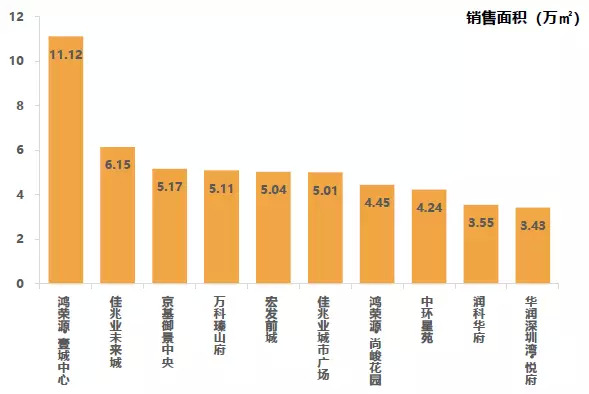 图:2018年上半年深圳商品住宅成交面积TOP10