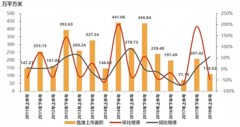 图:2011-2018上半年年深圳市商品住宅供应面积统计