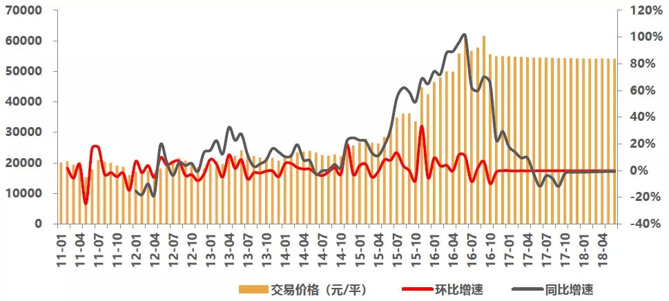 图:2011-2018年06月深圳市商品住宅成交价格统计