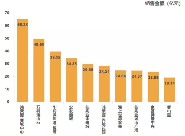 图:2018年上半年深圳商品住宅成交金额TOP10