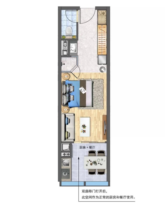 玄关作为日常外出和回家生活角色转换的重要位置,使用率极高。建邺吾悦百变稀贵公寓在入户玄关处贴心设计收纳柜,为业主提供穿鞋、挂衣、放包、挂钥匙、开关灯、照镜子等功能,全面满足出入门所需。