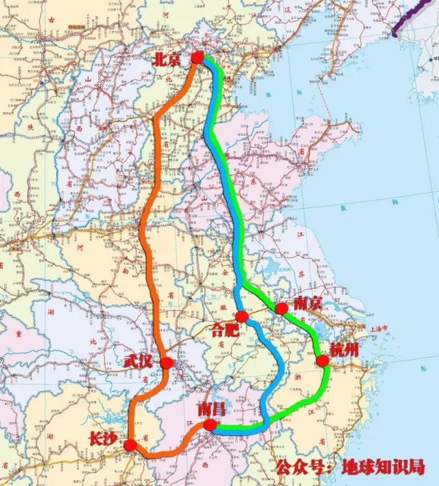 更悲哀的是,在武汉到九江客运专线开通前,南昌到北京的高铁,出现了绕道长沙经京广高铁进京、绕道合肥经合蚌、京沪高铁进京和绕道杭州、南京经京沪高铁进京的三路绕线走法。