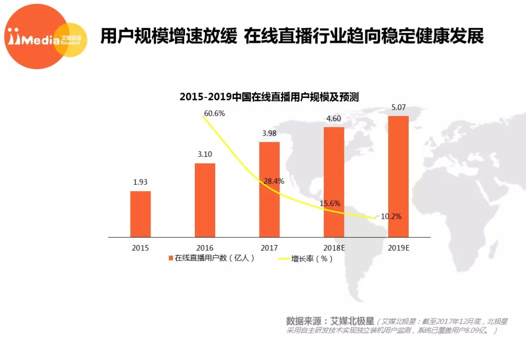 艾媒咨询的数据显示,2016年,在线直播用户数达到3.1亿,同比增长60.6%,但到了2017年,在线直播用户数仅同比增长28.4%,达到3.98亿。