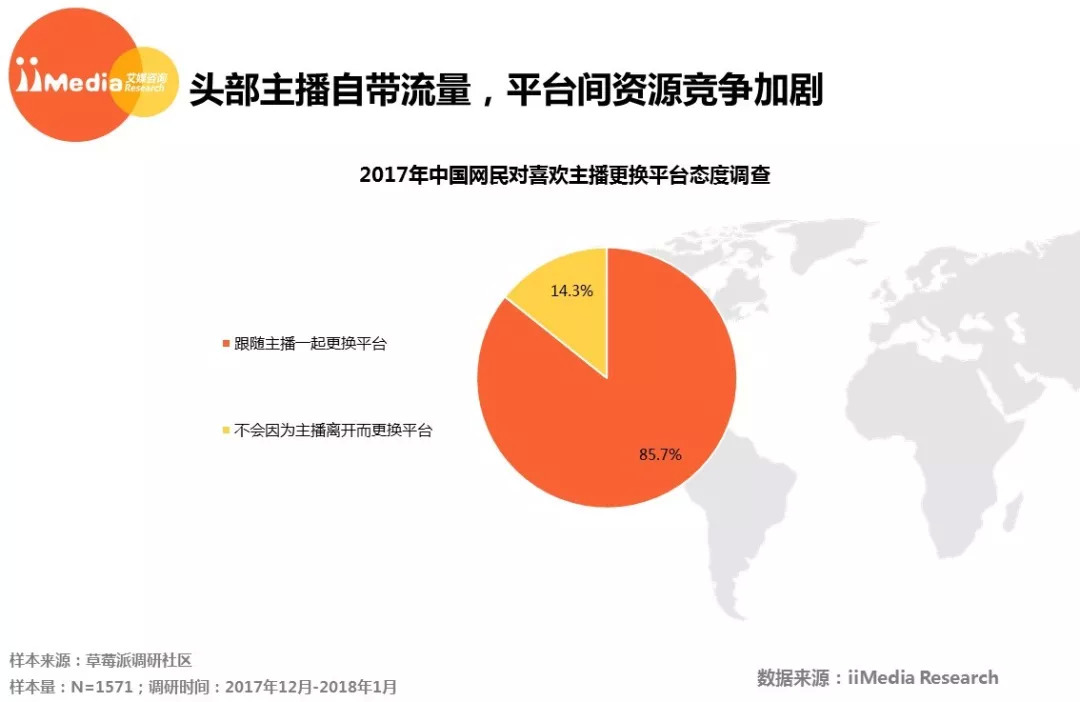 在这种情况下,直播平台对用户的争夺大多表现为对头部主播的争夺。艾媒咨询的数据显示,2017年,跟随头部主播一起更换平台的粉丝占比高达85.7%。头部主播的身价也因此水涨船高,比如此前有传言骚白的签约费高达2亿,冯提莫也曾被其他平台开价5000万挖人未果。