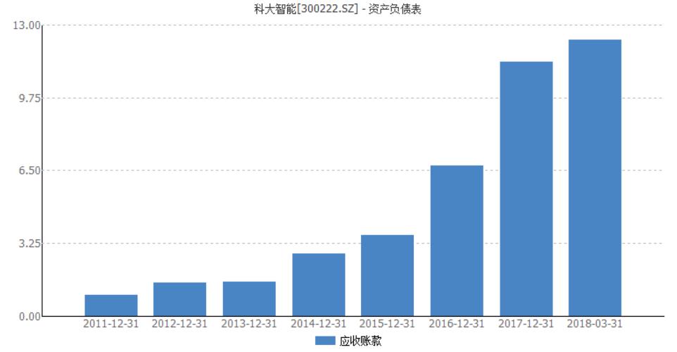 财务数据清晰反映了这家公司对资金的“饥渴”:科大智能截至今年一季度,账面现金仅为2.13亿元,需用于维持公司运营、支付员工工资,并偿还近7亿元的供应商欠款。此外,账面上还有超过1亿银行借款及近3亿的票据待偿还。整体来看,其负债总额自2015年起以50%以上的增速在增长。
